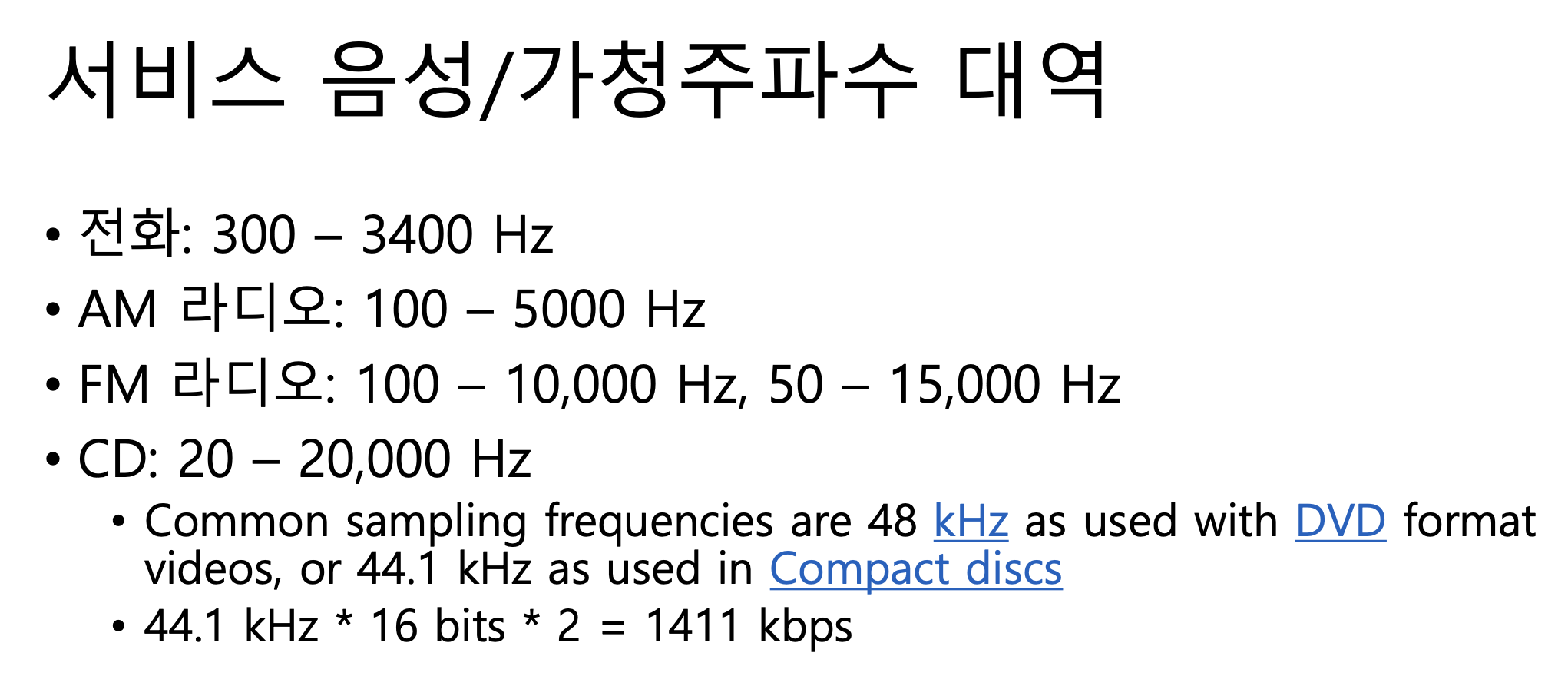 - Sampling Rate (1초의 아날로그 신호를 얼마나 샘플링 할 것인가, Sampling 단계, Nyquist Theroem)