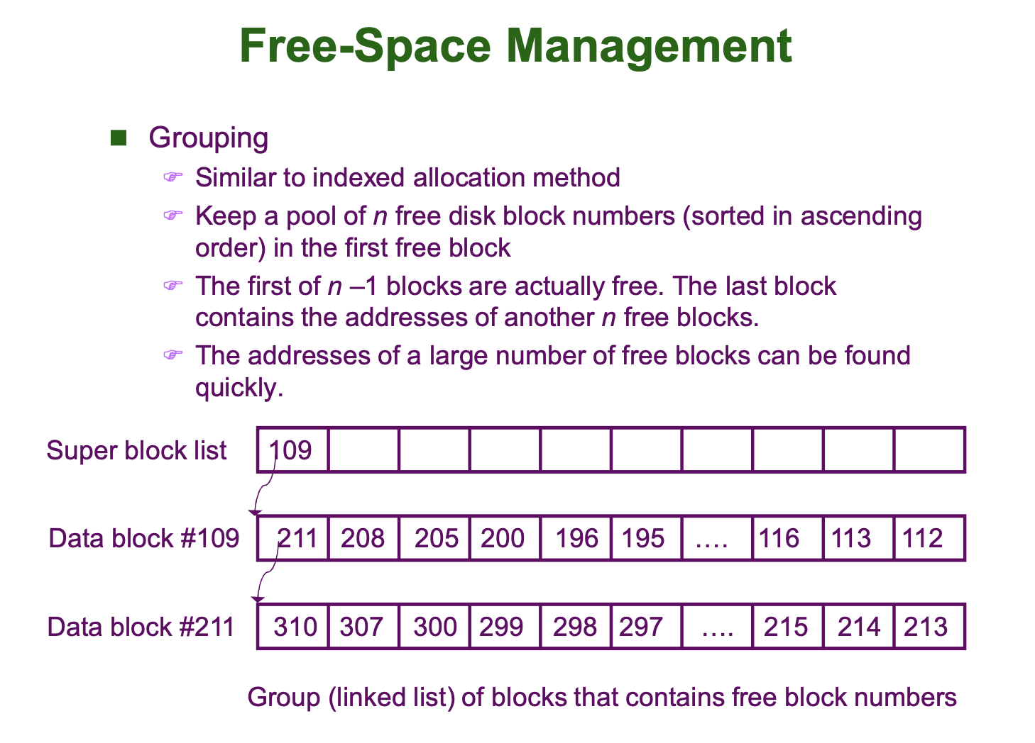 Grouping 방법은 Indexed Allocation 방법과 유사합니다.