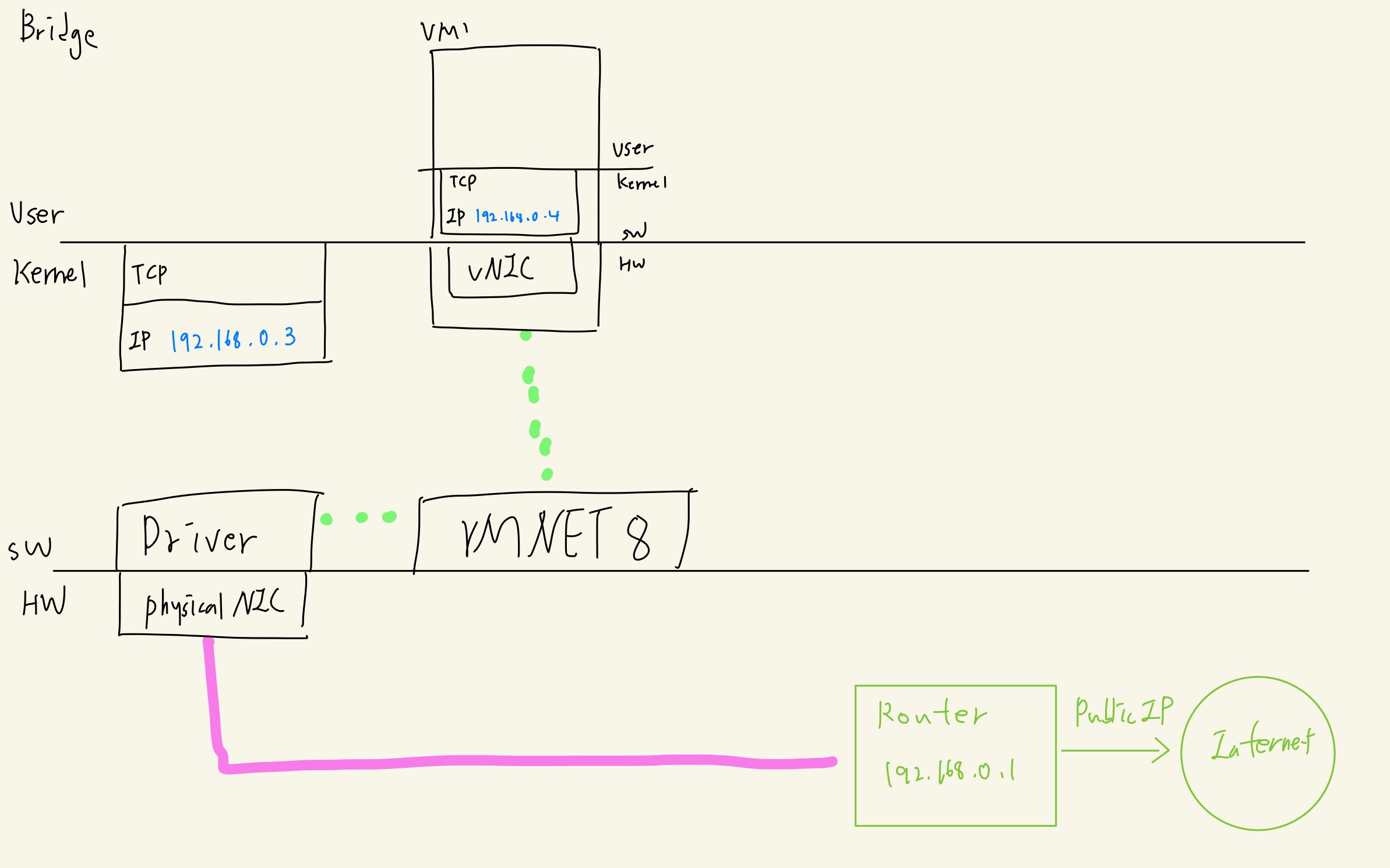 Bridge 방식으로 가상 머신 네트워크를 구성한 상태 NAT