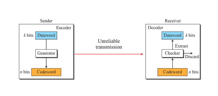 코드 워드 : 원래의 데이터 k bits + 오류 탐지를 위한 데이터 r bits