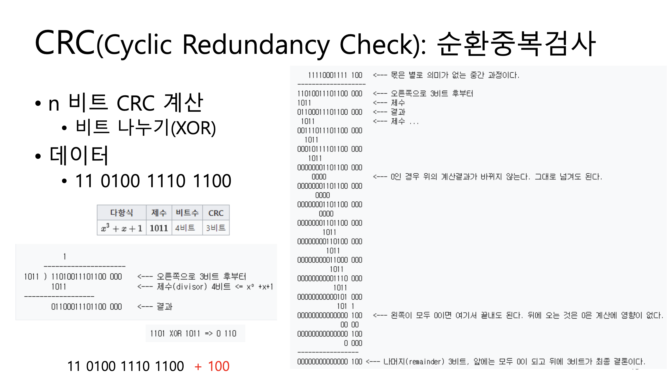 CRC : CRC 는 다항식의 나눗셈을 수행한 후의 나머지를 의미합니다.