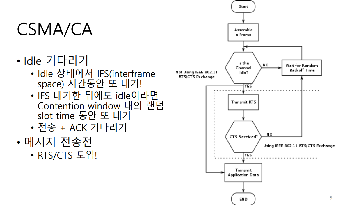 Collision Avoidance 를 위해 RTS (Request to send) 와 CTS (Clear to send) 를 사용합니다.