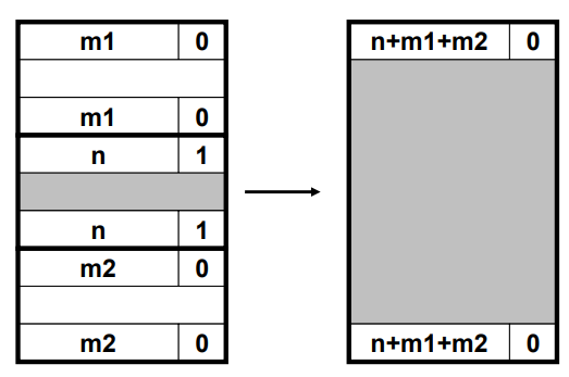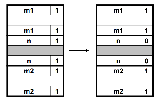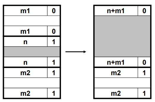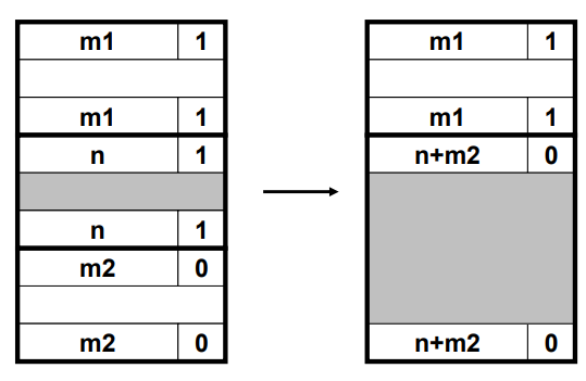 위 문제를 해결하는 방법으로 결합(Coalescing)을 제시합니다. 다음(next blcok) 또는 이전(previous block) 블록이 free 하면 함께 연결해서 더 큰 free 블럭을 만드는 것이 Coalescing 입니다.