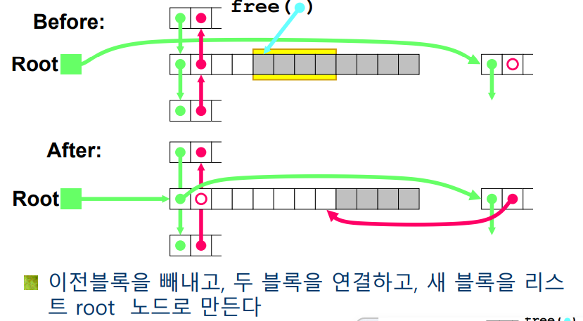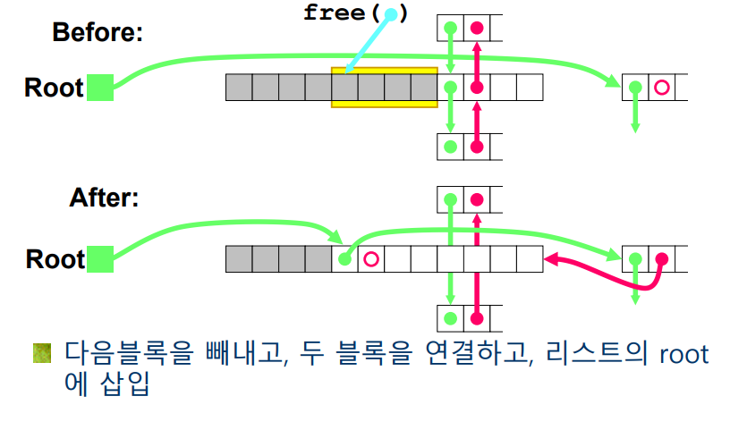 할당과 반환과정이 간접 리스트 (Implicit List) 에 비해 약간 더 복잡합니다. 그 이유는 블록들을 리스트에 추가했다가 떼어냈다가 하는 작업이 필요하기 때문입니다.